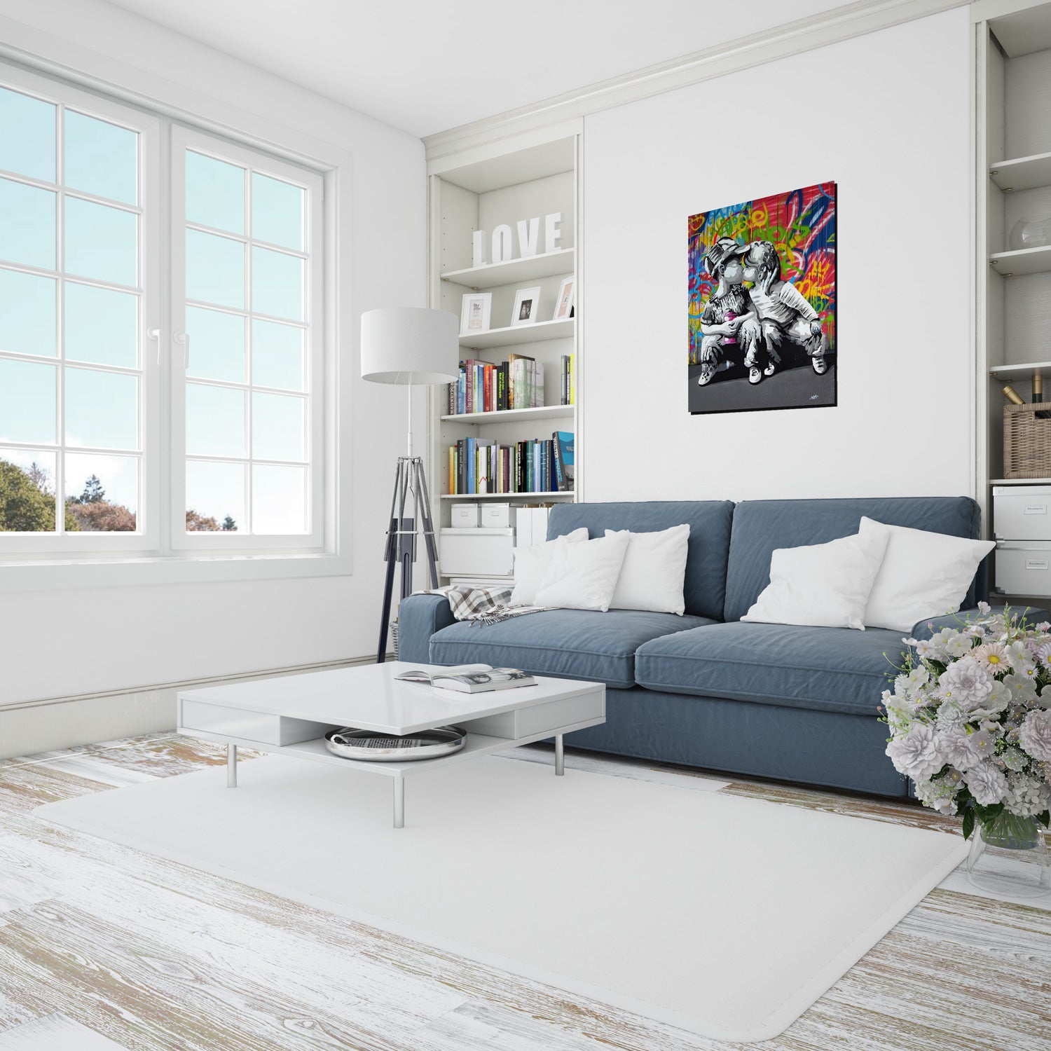 This stunning print features one of Banksy's most iconic works, the "First Kiss" mural. The image itself is captivating, full of detail and character that will leave you spellbound.