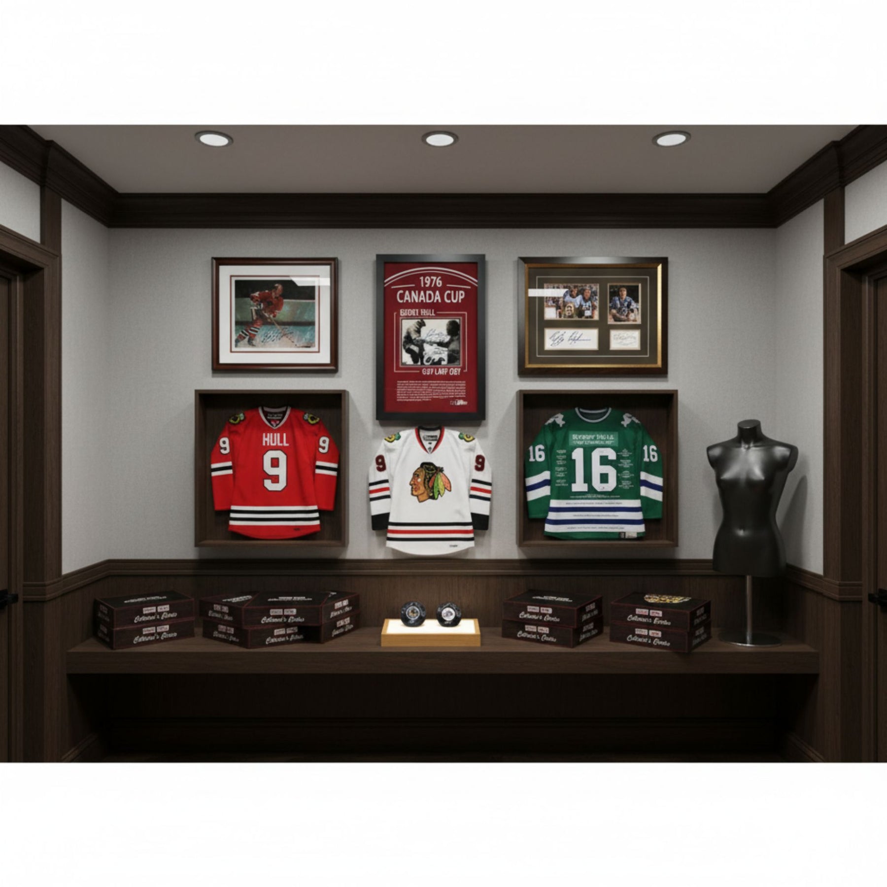 • Chance for Greatness: Bobby Hull Career Jersey 9 of 399, Hartford Whaler Career Jerseys 9 of 16, Premium numbered Frames, One of Kind from Owner's Stash !