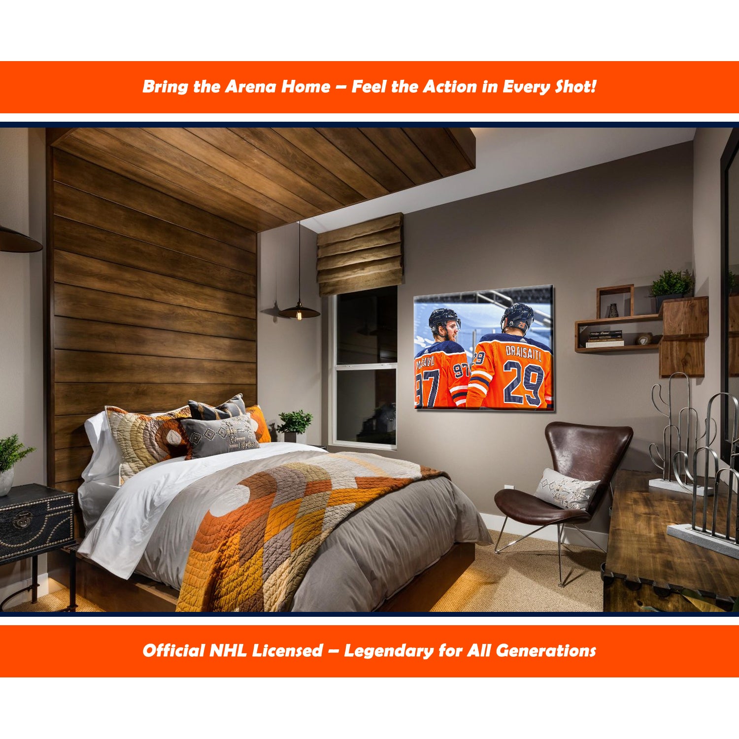 Celebrate the dynamic duo of Connor McDavid and Leon Draisaitl with this wrapped canvas, a tribute to two of the NHL's brightest stars. This artwork captures the camaraderie and chemistry that have made McDavid and Draisaitl a dominant force on the ice. Whether you're an Edmonton Oilers fan or a collector of hockey memorabilia, this framed canvas is a perfect addition to your collection, showcasing the brilliance of these two exceptional players. Dimensions: 16 x 20 inches.