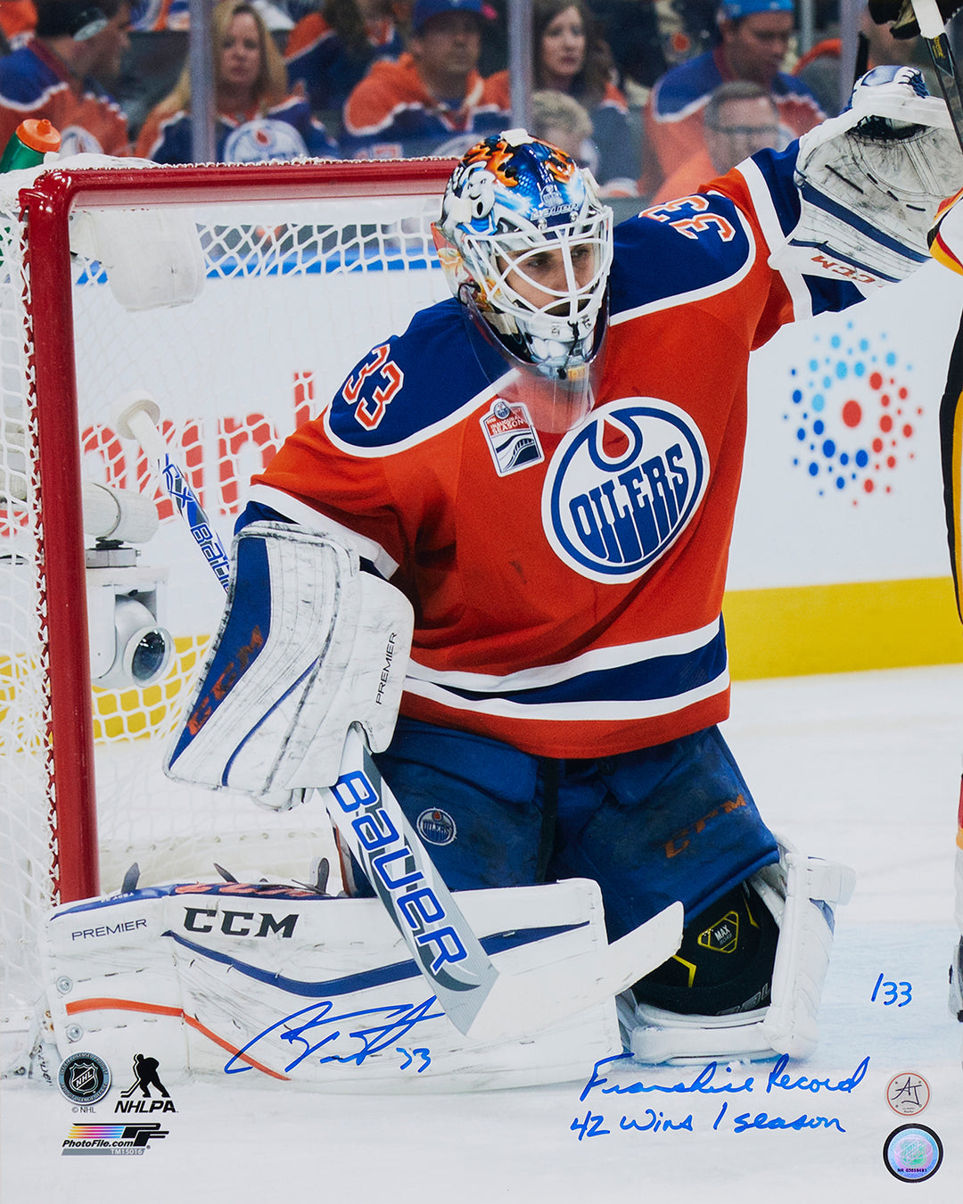 CAM TALBOT EDMONTON OILERS SIGNED & INSCRIBED 42 WINS RECORD 26X32 FRAME #/33