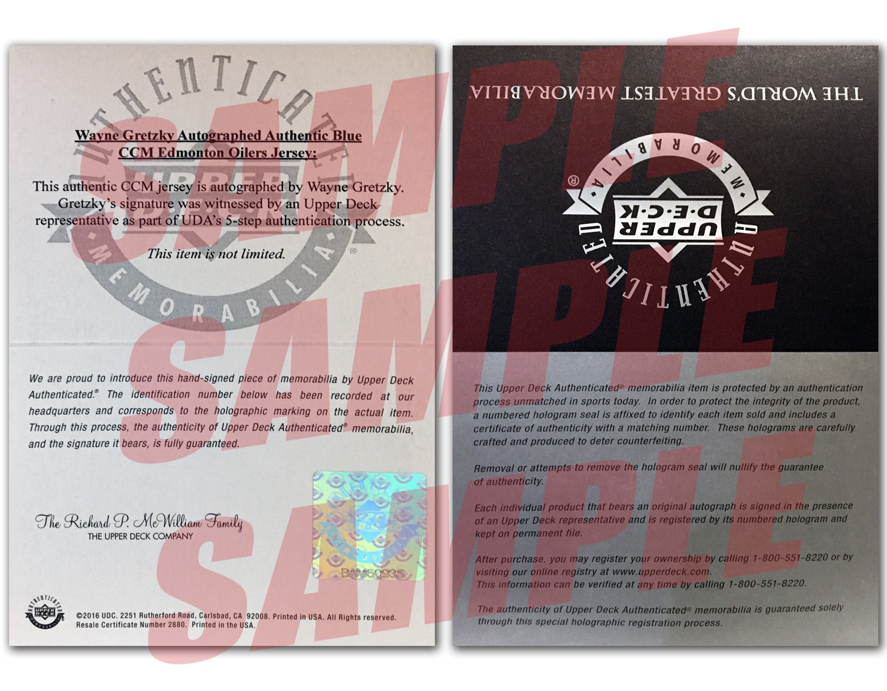 This is a Premium Pair, numbers 88 of both blue and white editions of 99, in honour of his '88 Stanley Cup Winning Year. These matching numbers are extremely valuable and 2 of the more sought after jerseys in the Career Jersey Collection. This is available for public purchase for a limited time only. It comes with a Certificate of Authenticity matching the edition number and guaranteeing the autograph. Includes a UDA certificate, validating the signature. Do not miss this opportunity to own a true piece of Hockey and Canadian Sports History.