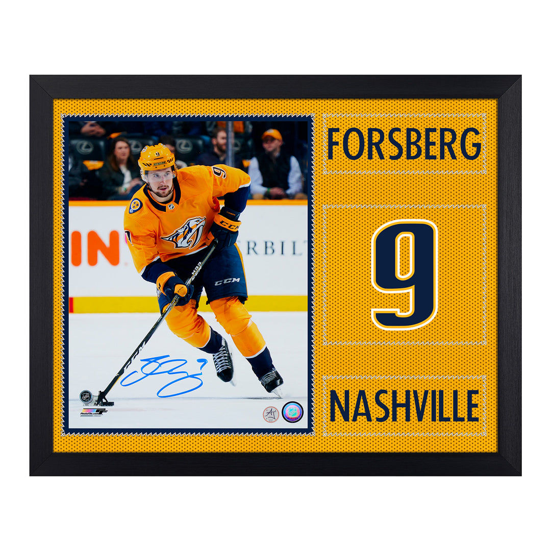 FILIP FORSBERG AUTOGRAPHED NASHVILLE PREDATORS UNIFORM GRAPHIC 19X23 FRAME